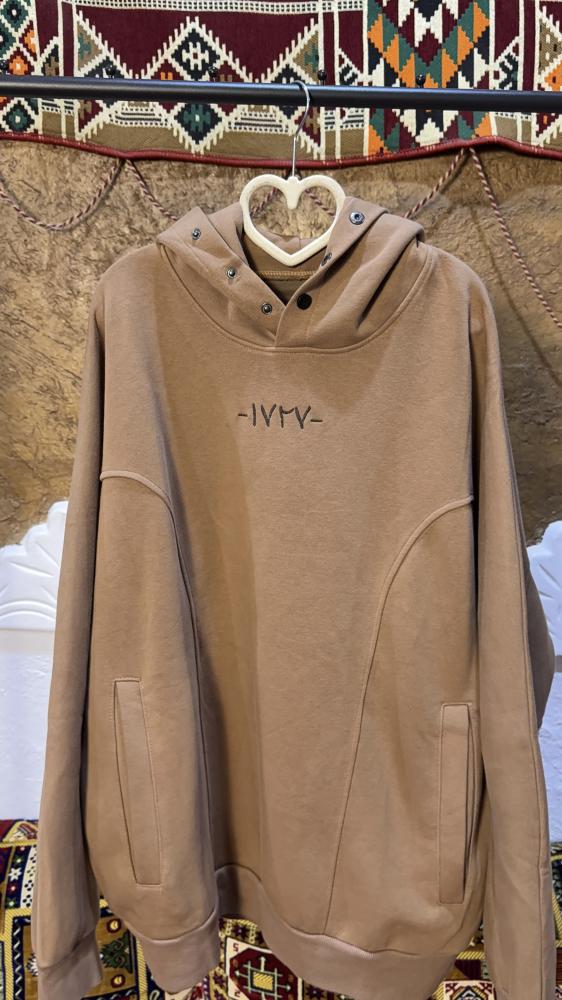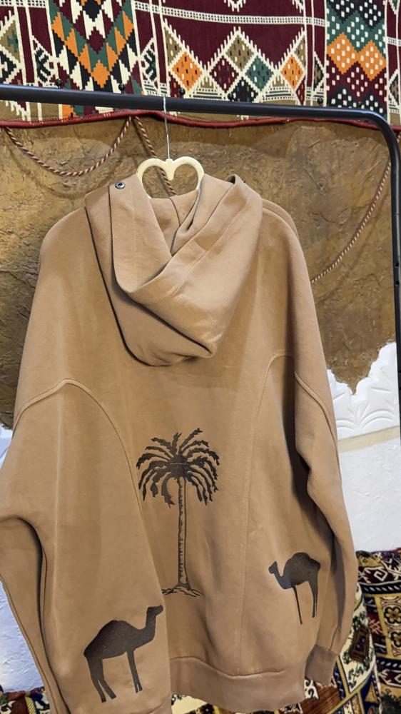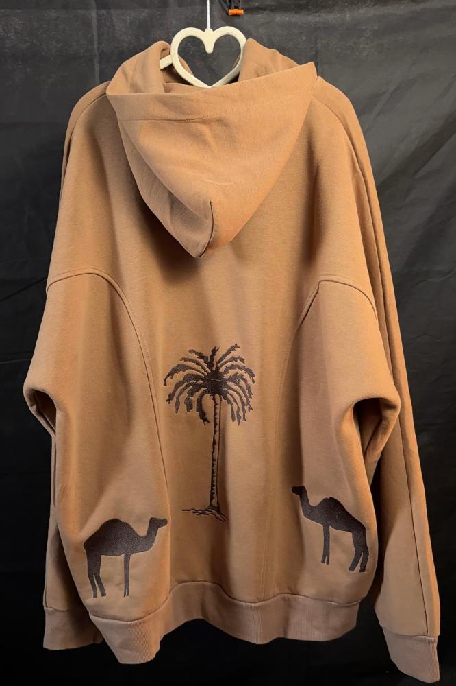 هودي أوفر سايز مصمم خصيصًا ليوم التأسيس السعودي، يتميز بتطريز أنيق يعكس هوية المملكة العربية السعودية. التطريز يضم نخلة وناقة بأسلوب فني مستوحى من التراث السعودي، حيث تم دمج التفاصيل بعناية لتبرز الرموز الوطنية.