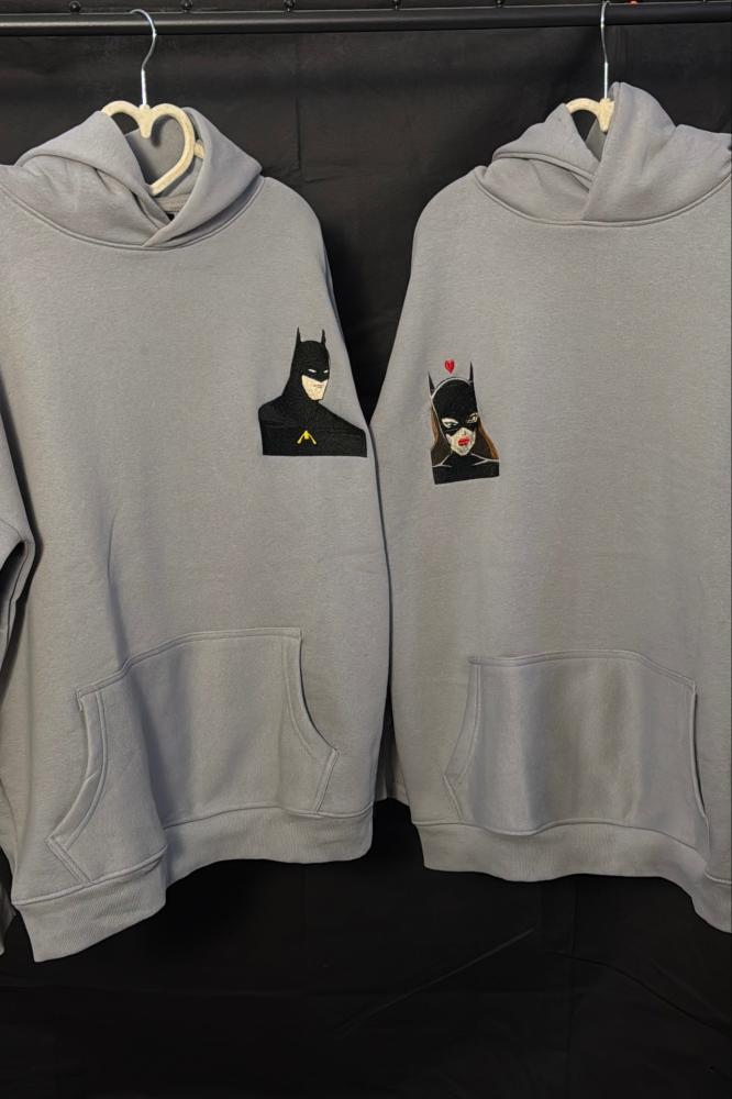 هودي أوفر سايز بفتحة إبهام بتطريز شخصية باتمان وكات وومن (Couples Edition)